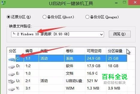 2、在装机工具中选择win10镜像装在c盘中,点击确定,如图: