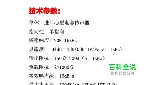 如图所示:灵敏度:-34B±≠2dB,dB中文称"分贝",分贝(decibel)是量度两个相同单位之数量比例的单位,主要用于度量声音强度,常用dB表示。