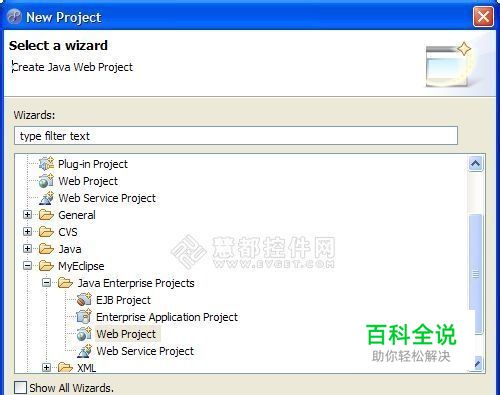 Step 1:选择File > New > Project > MyEclipse > J2EE Projects > Web Project,打开新项目创建向导,如下图所示,然后选择Next >。