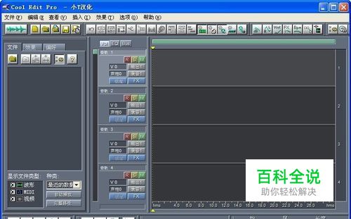 首先下载Cool Edit Pro2.1中文专业版,安装完成后启动软件,界面如下,左侧是菜单区,右侧较大部分是音乐左右声道波形编辑区。