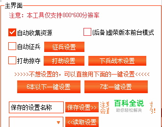 6本、7本一键设置:点击工具界面中的“6本以下一键设置”,或者“7本以下一键设置”后工具就会进行工具功能的自动设置,这个设置适合一些游戏新手玩家不太会进行工具设置而推出的。其正包含了当前工具中的资源收集、征兵、掠夺、下兵等设置方便新手玩家长时间挂机