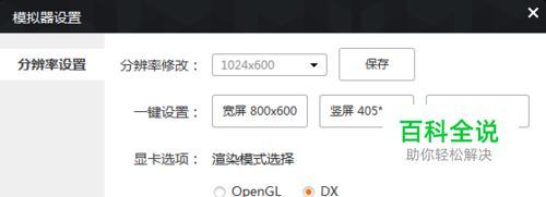 模拟器渲染设置:目前仅支持DX渲染模式