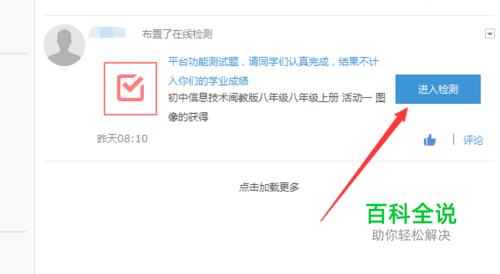 使用学生号登录教育资源公共平台,可以看到自己的学习任务,单击进入检测。