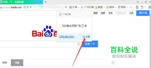 鼠标左键单击”广告拦截“,在弹出的小对话框内点击下面的设置小图标。