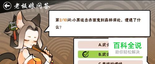 第二题,小黑追击赤面鬼到森林深处,遭遇了什么,答案是武士的埋伏,游戏中鬼族只是武士设计的陷阱,并未出现过。