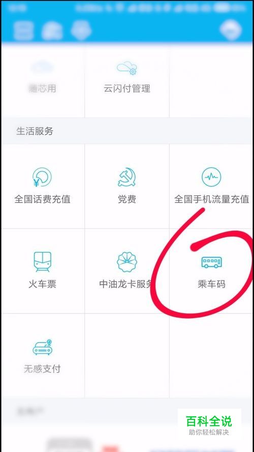 接着我们把界面往下方滑动,在生活服务区找到乘车码,点击打开,如下图所示。