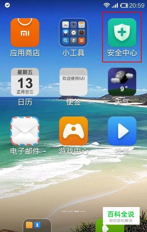 在手机桌面上面找到【安全中心】。不同版本的系统在设置上面有可能存在设置的差异,所以要注意。