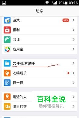 登陆手机QQ,打开【动态】如图,打开【文件/照片助手】