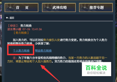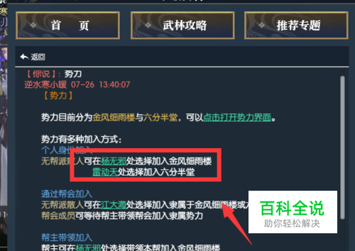 逆水寒江湖势力分为两派,分别是金风细雨楼和六分半堂,两派势力互为水火,但是相互是可以转换的,接下来小编教大家更换势力的方法。