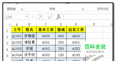 以图中的表格为例演示操作方法; E列的结果是由公式生成的;假设,现在需要在F列把E列的公式给提取出来。 选中E列的应发工资所有单元格。