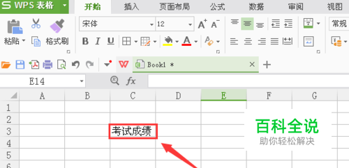 选择一个单元格,并在该单元格里输入考试成绩四个字,如图所示: