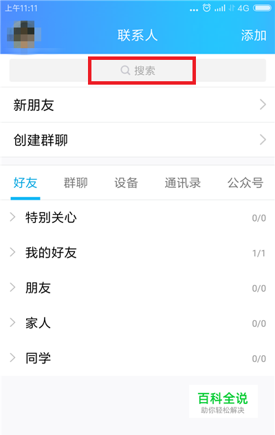 打开联系人界面后在上方有个【搜索框】,在搜索框中输入【坦白说】并点击搜索。