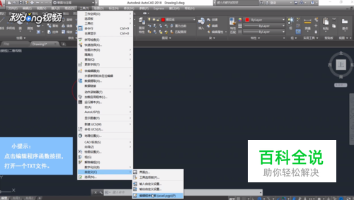 在菜单栏点击工具按钮,在下拉菜单点击自定义选项,点击编辑程序函数按钮,将打开一个TXT文件。