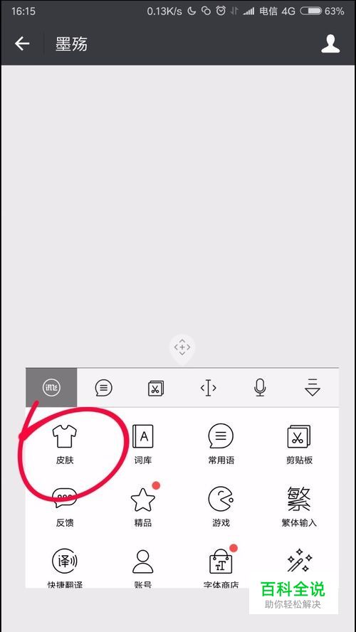 首先我们在聊天界面打开讯飞输入法,然后点击左上角的皮肤图标,如下图所示。