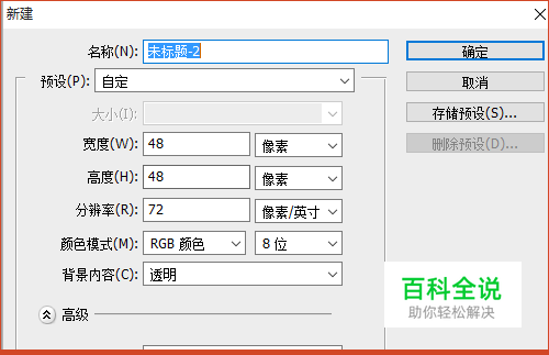 打开任意画图工具,这里演示使用PS(PhotoShop),然后新建一个图层,画布大小设置为48*48像素: