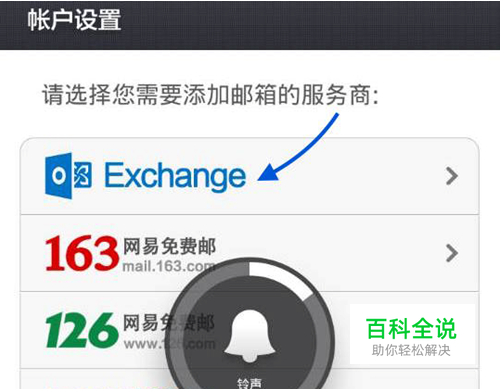 初次打开邮箱,进入邮箱类型选择界面,这里需要选择“Exchange”类型,如图所示