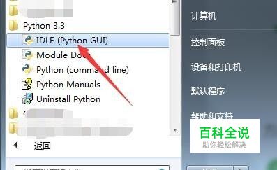 这里使用其IDLE编辑器,进行程序演示,也有一些功能更多的编译软件可以使用。通过开始,选择程序目录中首项,启动。