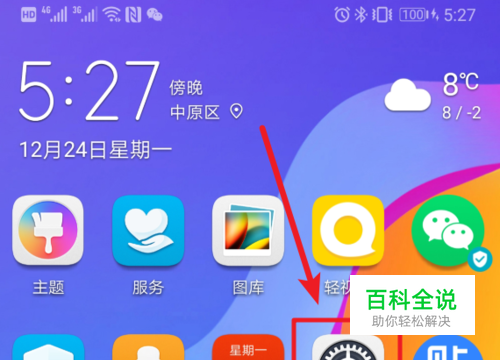 我们解锁华为手机进入系统后,在手机中点击设置的图标进入。