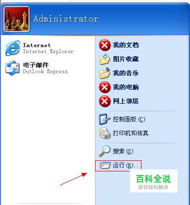 首先我们打开开始菜单,然后选择运行选项,如图所示: