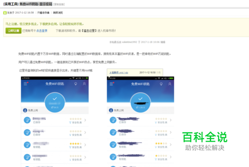 首先你需要一个android的手机,然后呢请到gfan或者木蚂蚁搜索“免费wifi钥匙-显示密码”,你会看到下图中这样一篇帖子
