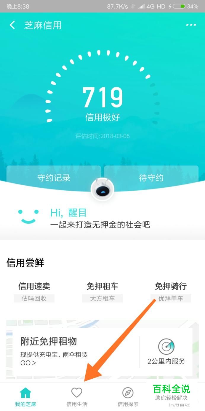 然后点击屏幕下方的信用生活菜单。