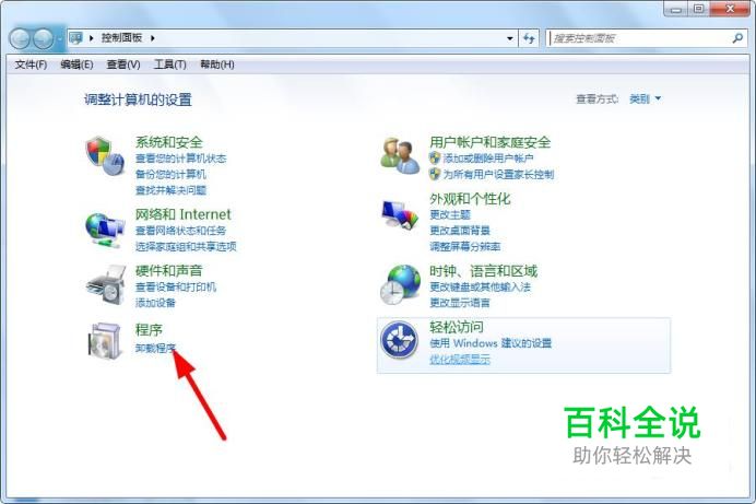 首先打开控制面板找到“卸载程序”这个选项进入 如图