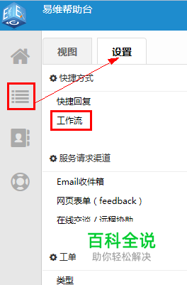 点击“工单”-“设置”-“工作流”。
