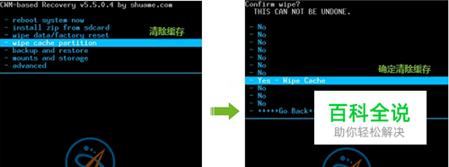 wipe cache partition 清除缓存 Yes - Wipe Cache 确定清除缓存