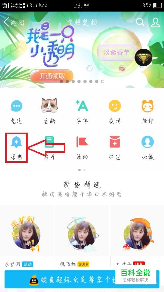 在个性装扮窗口点击“来电”,进入来电商城界面