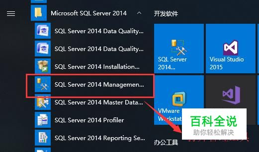 首先打开系统快速启动栏,在软件列表中找到SQL Server Management Studio的启动方式,如下图所示