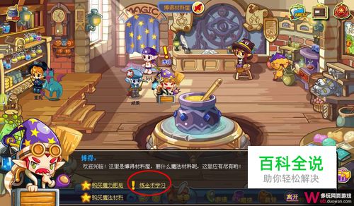 看完动画,我们来到博得材料屋门口,找万事通对话,选择“炼金术学习”。