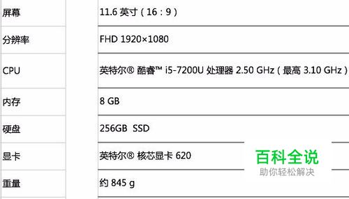 配置信息 具体硬件配置为:Intel Core i5-7200U处理器、8GB内存、256GB固态硬盘、Intel 核芯显卡620、11.6英寸1920×1080分辨率的显示屏,预装Windows 10家庭版操作系统,具备指纹识别模块、具备键盘背光灯,整体性能主流。