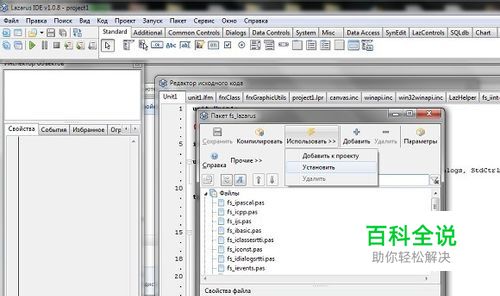 打开fs_lazarus.lpk,然后选择“Use”->“Install”,然后重启Lazarus,FastScript就已经添加到Lazarus中了,如下图。
