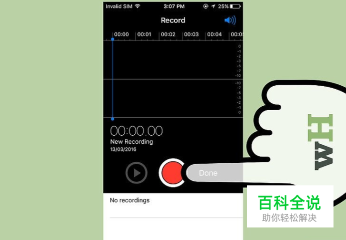 点击红色的录制按钮,开始录制新录音。iPhone会立刻开始录制来源于设备麦克风的声音。