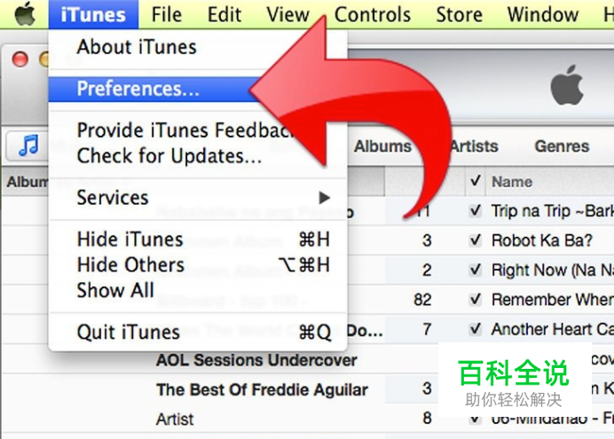 下载歌曲时,到 iTunes,选择iTunes →首选项。