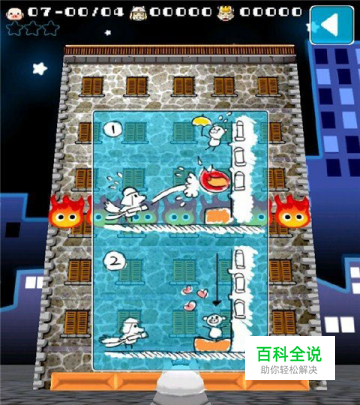 游戏拥有90多道关卡,不过每个关卡都貌似围绕着同一个建筑来进行,只不过火势大小不一罢了。进入游戏后的每一个关卡都会指定游戏目标,如下来7个需最少营救4个等等,而当小猪们全部获救时,便可获得最高的三星完美奖励!