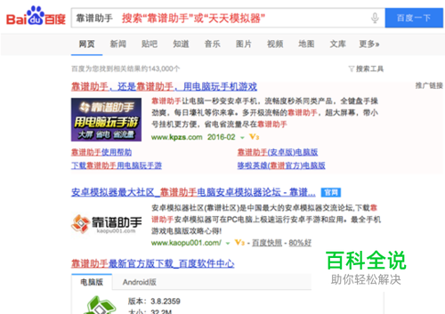 电脑不能直接玩手游,需要借助一款安卓模拟器。搜索一款安卓模拟器来进行下载、安装。