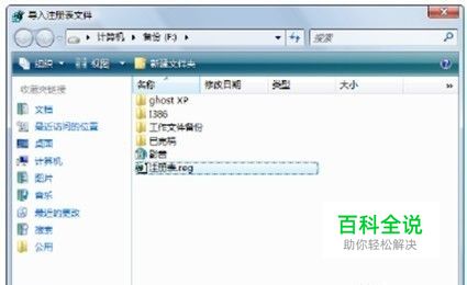 (2)恢复注册表 重装win7系统后,若要恢复注册表,酋先启动注册表编辑器,然后执行“文件”一“导入”菜单命令,在弹出的“导入注册表文件”对话框中选中崙份的注册表文件并单击“打开”按钮即可。