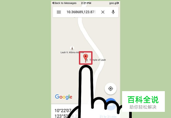 点击谷歌地图链接。它位于文本信息中,在定位地址的后面,以“goo.gl/maps”开头。