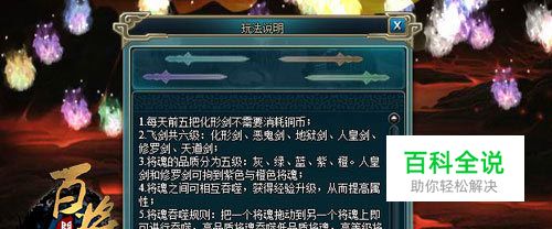 每当看到这些飞剑,真让人兴奋不已,飞剑共分为六级,化形剑、恶鬼剑、地狱剑、人皇剑、修罗剑和天道剑,这六道剑神效无比,当然,越是高级的剑所得的将魂也是越高级。由六道剑收集回来的将魂,通过吞噬规则就可得到高品质的将魂,将魂在手,绝对让玩家威力大增!