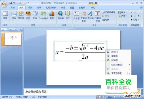 怎样在PowerPoint 2007中变换复杂公式的颜色