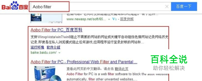 您可以在谷歌或者百度搜索页面搜索关键词“Aobo Filter”来下载一个网络过滤软件。