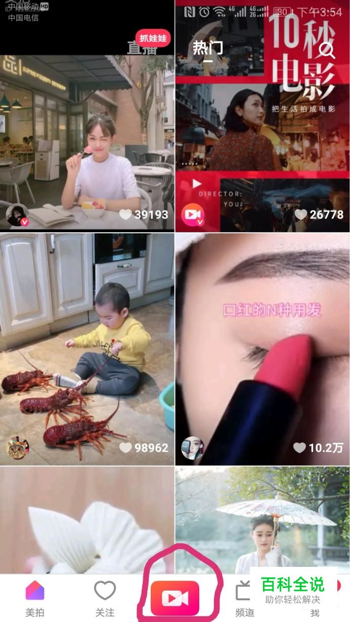 打开已经下载好的美拍APP美拍APP之后,点击中间的拍摄按钮,如下图所示;