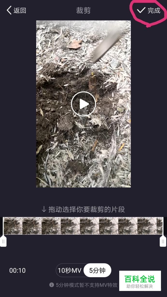 如果需要对视频进行剪辑,则拖动你需要剪辑的区域,剪辑好之后点击完成,如果不需要剪辑,就直接点击完成;