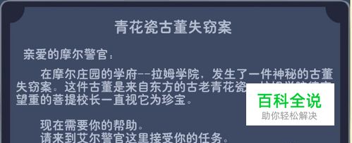 对话完毕后,点左上角的地图,选择:校长室,去找菩提大伯。和菩提大伯对话,开始找线索。点击左边中部和右边中部的箭头移动画面寻找物品。在拉姆教导处一共能找到三个物品。