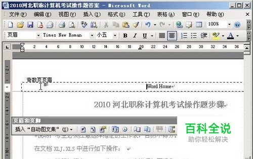 在Word2003文档中添加奇偶页不同的页眉页脚