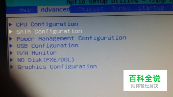 首先要在主板BIOS中把硬盘模式设为AHCI,只有在这种模式下固态硬盘才能发挥应有的性能。开机按DEL进入主板BIOS,选择上方的“Advanced”,在此界面选定第二行的“SATA Configuration ”.