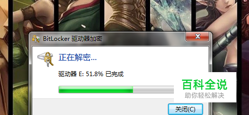 然后系统会自动对驱动器进行解密,桌面右下角会有提示 解密过程中你会发现E盘全是红条,这个没有关系的,解密完成之后会恢复