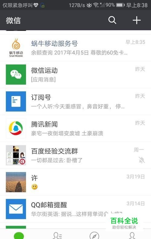 现在在公众号列表找到““蜗牛移动服务号””,然后点击进入