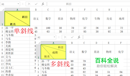 2、Excel斜线表头:多斜线